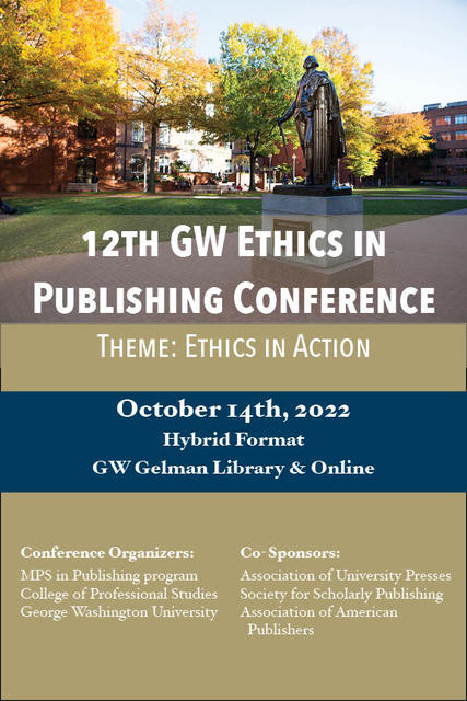 The 12th GW Ethics in Publishing Conference was held Friday, October 14th, 2022, 9:00 am to 5:15 pm EST, in a hybrid format, with in-person and online presenters and attendees.