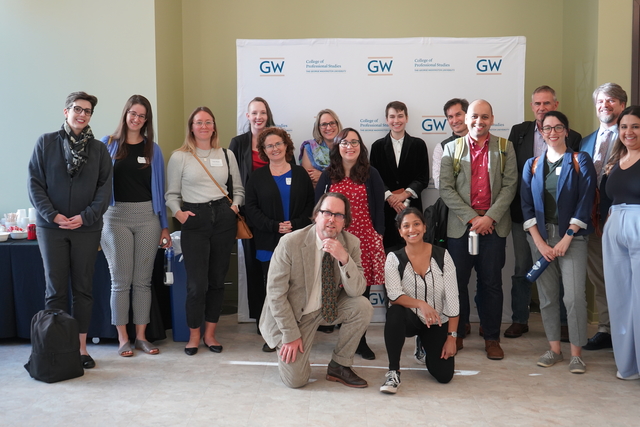 In-person attendees and presenters at GW's Arlington Graduate Education Center, October 12, 2023.