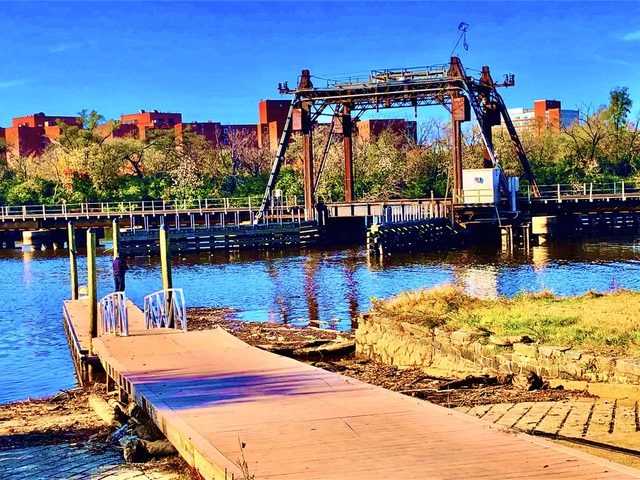 View of the CSX train crossing over the Anacostia River from the Anacostia Park