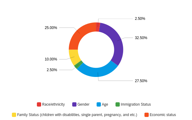 When asked if family status and the type of it affected their level discrimination, the most common answer was that the employee had a child with disabilities at 50%.