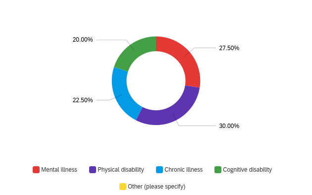 - 66% said that their disability would be considered invisible. Which means that over half of employees' conditions, regardless of type of impairment, are not apparent to the public.