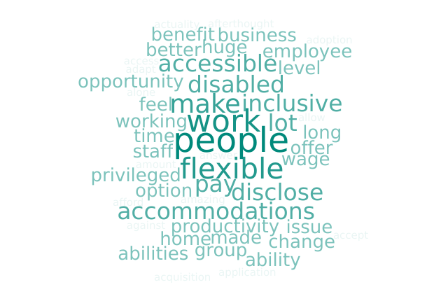 This research is focused on the US publishing industry because it is what I, the author, can speak to. That being said, the application of this data has far-reaching implications that could see people with disabilities have chances to gain employment across multiple industries and countries. This would lead to positive changes, including stability for their health, finances, and the ability to participate in the economy more fully. There is also the benefit of an emotional sense of fulfillment that comes along with that due to being able to be self-sufficient— which is often a dream that most disabled people carry, but do not know if they can have. When one considers 6%+ (~15,806 people at least) of the workforce could be working again given the right conditions, this is incredibly important research to undertake (Bureau of Labor Statistics 2022; Alexander et al. 2021; Clayton 2021).[5]